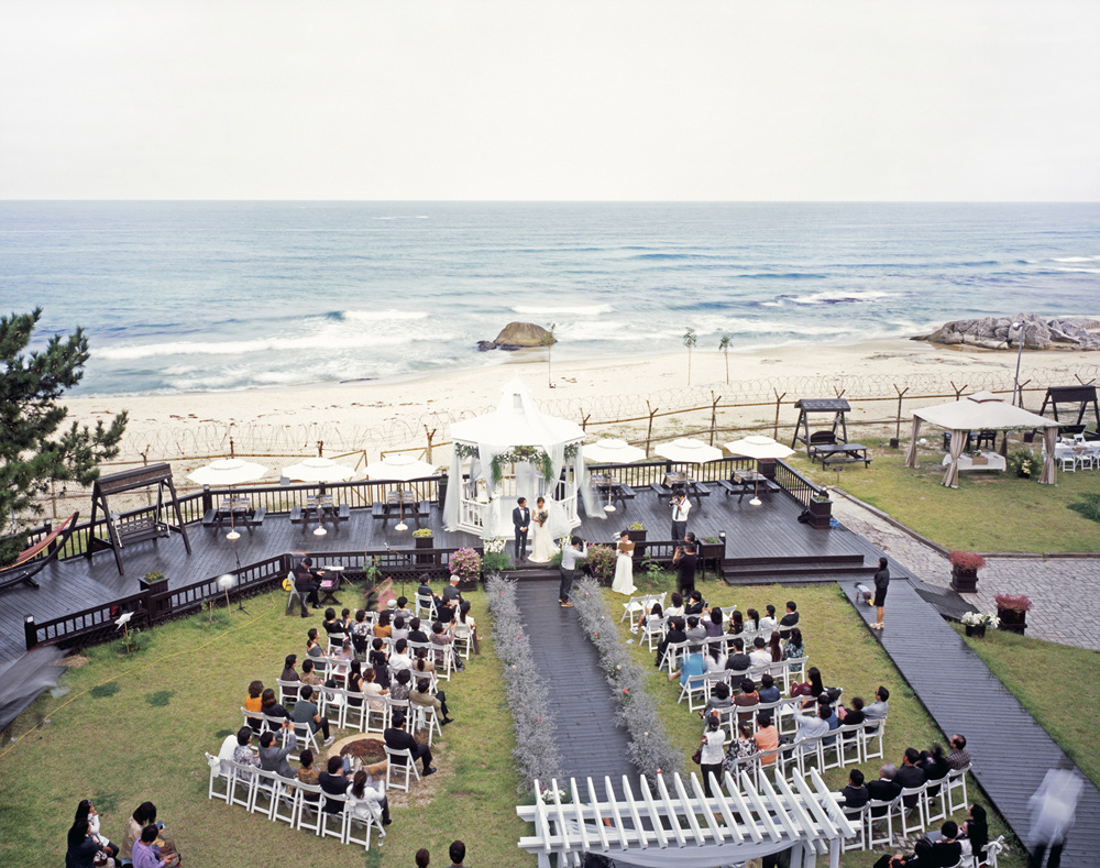 소나무 숲 너머 끝없이 철책선으로 이어진 해안의 경계에서 바다색만큼이나 푸르고 행복한 이들을 만났다. 환한 햇살 아래 시원스러운 바닷바람을 맞으며 식장으로 걸어가는 신랑 신부, 그리고 함께 한 부모 형제와 오랜 친구들의 모습. 또 다른 바닷가에서는 이웃들이 소나무 숲 아래에서 더위를 식히고 있는 한가로운 모습이 너무나 행복하고 평화로워 보인다. 그러나 이들의 행복한 장면 앞에는 불편하지만 평소 무심하게 보아 오던 철책선이 놓여 있다. 바다로의 접근과 조망을 제한하고, 해변의 출입을 통제하는 이 장치는 분단 이후 65년이 흐른 지금도 우리의 일상 속에 굳건히 자리하고 있다.