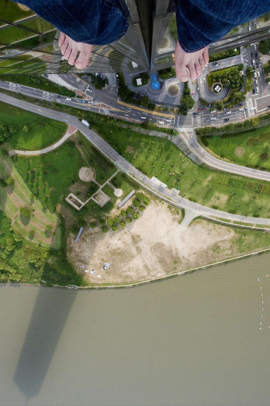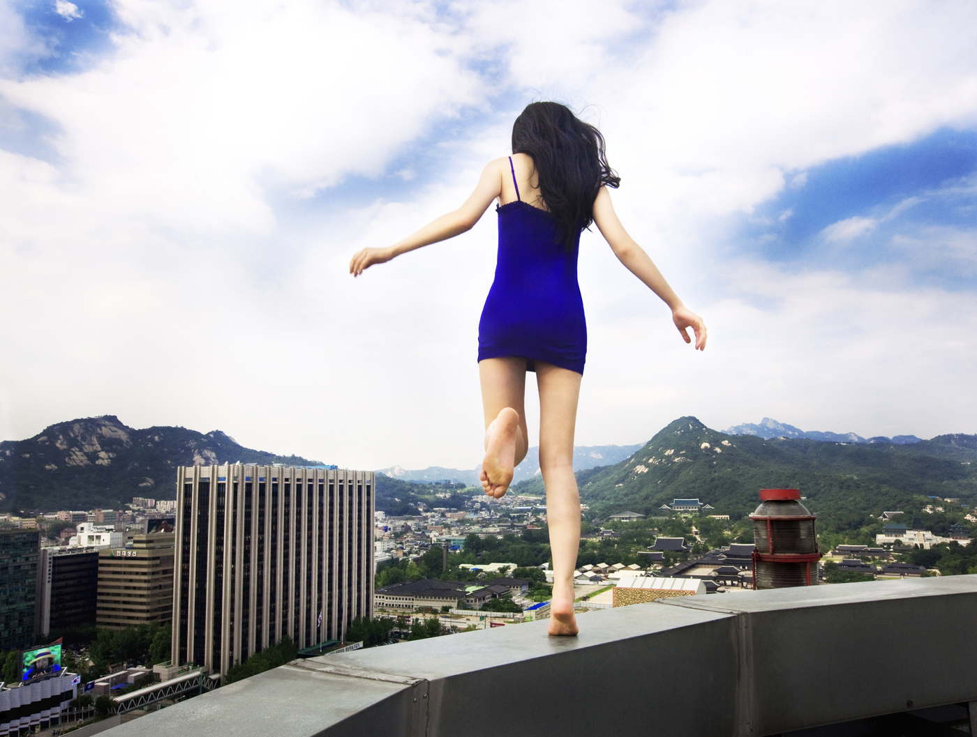 벼랑 끝에 서있다고 생각되는 순간이 있었다. 어느 날 문득 그런 생각이 들었다. “유년은 사라져 돌이킬 수 없고, 미래는 보이지 않는구나.”라고 어느 여름날 난간에 걸터앉아 생각했다. 그 순간 내 ‘앞에’ 펼쳐져 있다고 생각했던 화려한 풍경들은 환상이 되었다. 내가 앉은 32층 아파트 옥상의 아래를 내려다본다. 아찔한 간극과 저 멀리 바닥이 보였다. 어떤 사람들이 보았던 생의 마지막 풍경과도 비슷할 것이라는 생각이 들었다. 돌아갈 수 없는 과거와 먼 미래 사이의 현재. 한 발짝 내딛으면 죽음, 그리고 그 경계에 앉은 삶. 나는 그렇게 살아있었다. 아주 짧은 순간, 허공을 본 것 같았다. 현재란 돌이킬 수 없는 과거와 가닿을 수 없는 미래 사이 아주 짧은 허공이었다. 방으로 뛰어내려와 카메라를 가져왔고, 다시 그곳에 앉아 내가 디디고 있는 허공과 내 발을 찍었다. 그 순간이 시작이었다.