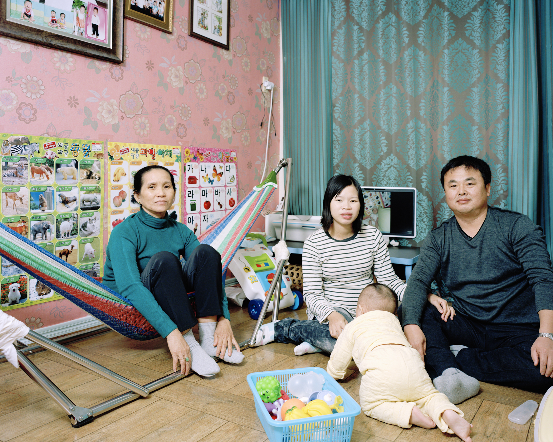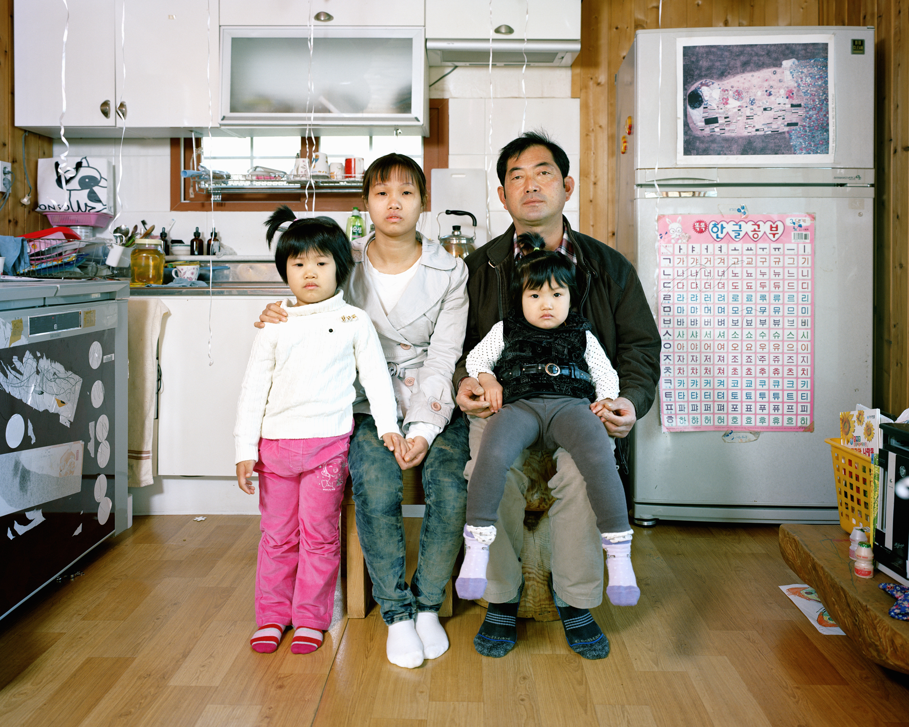촬영은 연출을 최소화함으로써 촬영 대상자가 자신을 드러내는 방식을 취하고자 했는데, 카메라를 대하는 태도에서부터 드러나는 가족 간의 관계와 질서 등에 유의했다. 이러한 가족 관계 속에서 결혼 이주 여성들의 위치가 결정되었다. 집에는 그들의 삶과 상이한 문화가 서로 부딪히고 스며들어 있었는데, 집 안에서 입는 옷, 집을 꾸미는 방식, 소품의 종류와 배치에 유념하면서 촬영을 진행했다. 유독 눈에 띄는 것은 거실에 붙여 놓은 한글판이었다. 어린 자녀의 한글 교육을 위한 것이지만 결혼 이주 여성들이 배우고 익혀야 할 언어의 문제를 보여 주기도 했다. 동남아시아에서 온 엄마와 한국에서 태어난 아이는 한국과 한글로 묶인 공동 운명체였다.