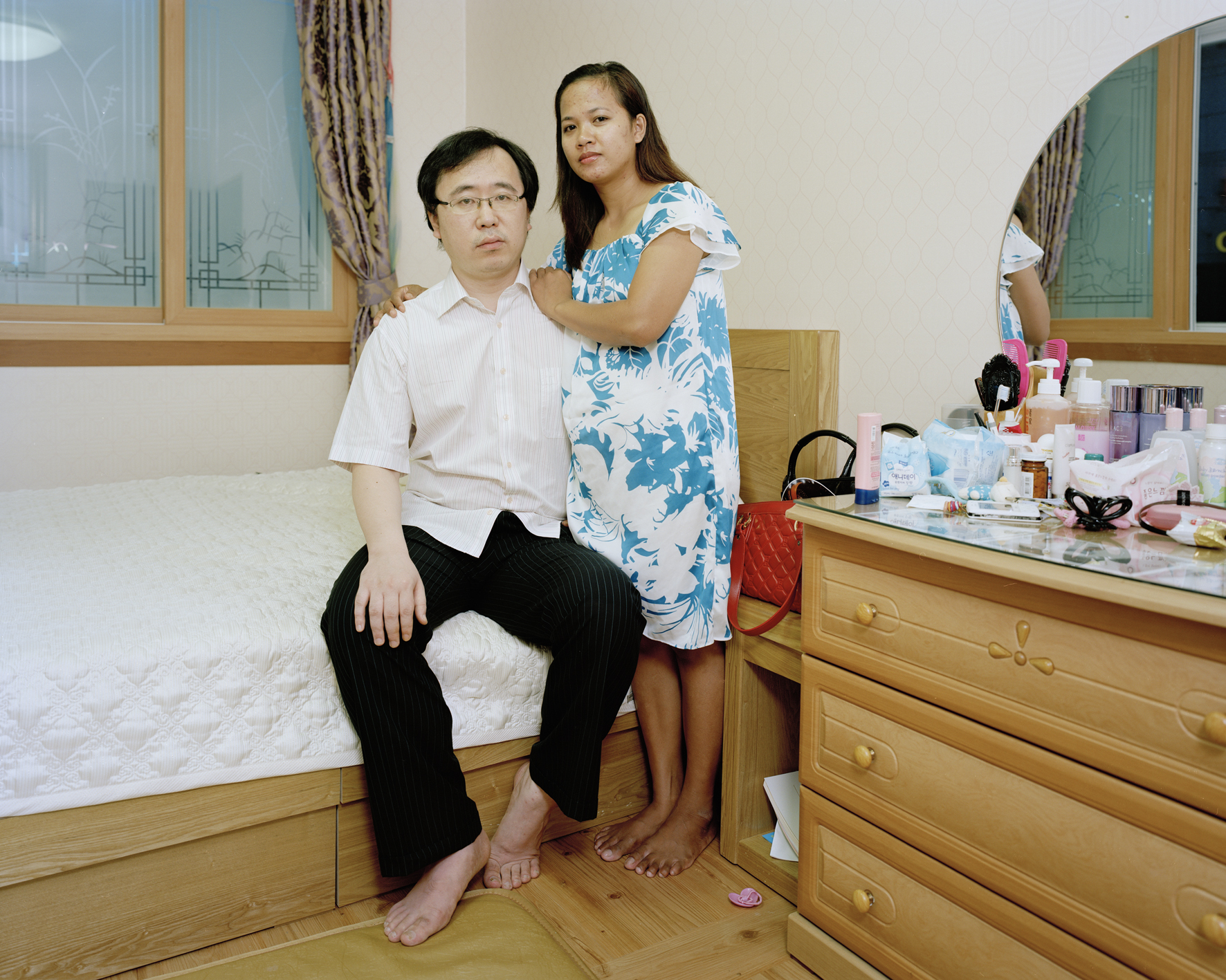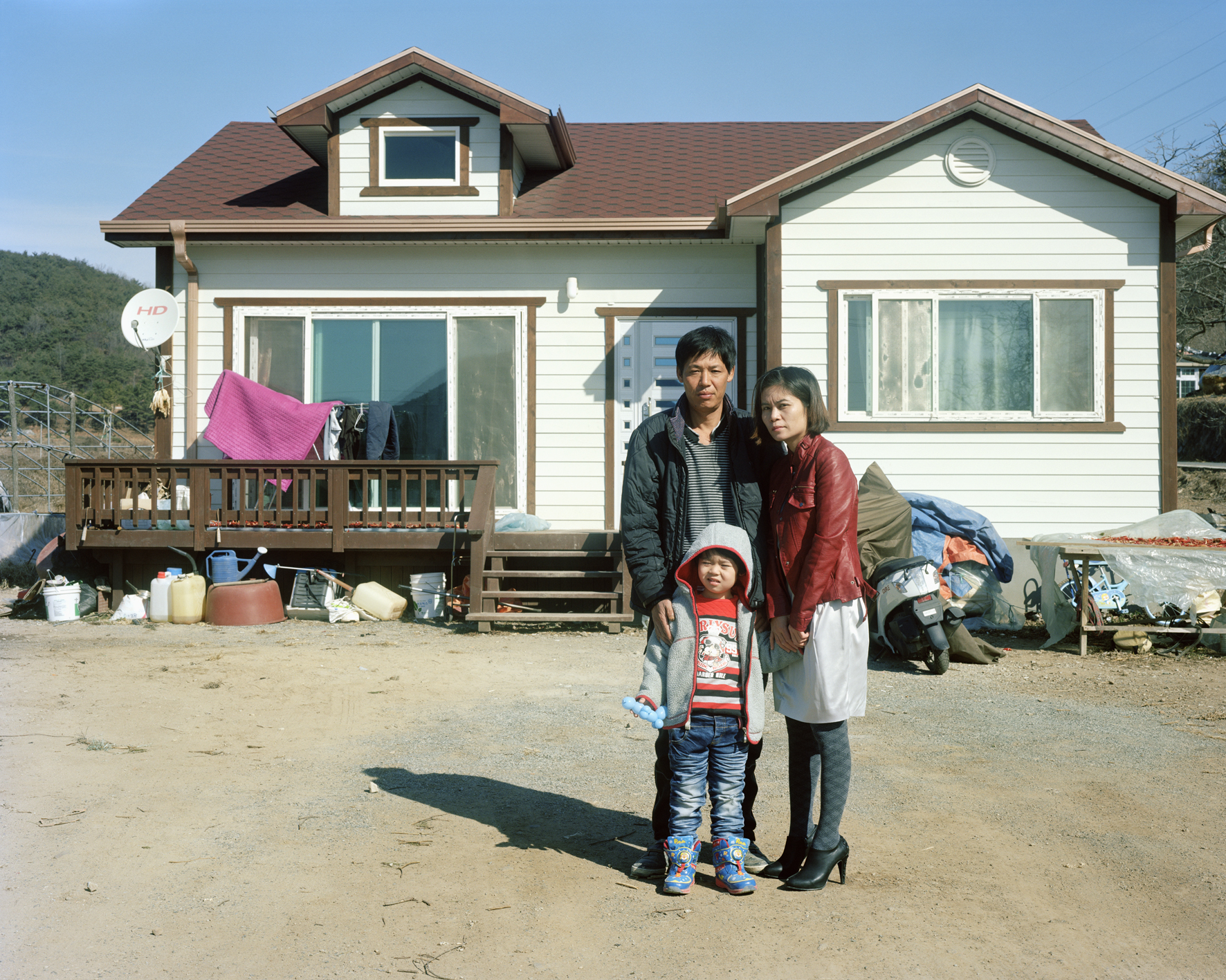 촬영 대상자들을 만나는 것은 어렵지 않았다. 정작 어려운 것은 카메라 앞에 세우는 문제였다. 흔쾌히 촬영에 응하는 분도 있었지만 꺼려하는 경우도 많았다. 그런 분들은 동남아시아에서 온 여성과 결혼한 것을 내심 부끄러워한다든지 드러내는 걸 부담스러워했다. 촬영은 전적으로 남편이 결정했다. 결혼 이주 여성들과 한국어로 의사소통을 하는 것도 어려운 문제거니와 의사 결정의 주도권을 갖지 못하는 경우가 많았기에 최종 결정은 언제나 남편의 몫이었다. 결혼 초기의 이주여성들은 남편에 의해 대리되고 중계되는 삶을 산다고 할 정도로 주체적이지 못한 경우가 많았다. 남편의 주도권은 외부의 차별적 시선을 걸러 주는 긍정적인 역할을 하기도 했지만 가부장의 권력이 더해져 이중의 고통이 되기도 했다. 그 속에서 그녀들은 정체성의 혼란을 겪었다.