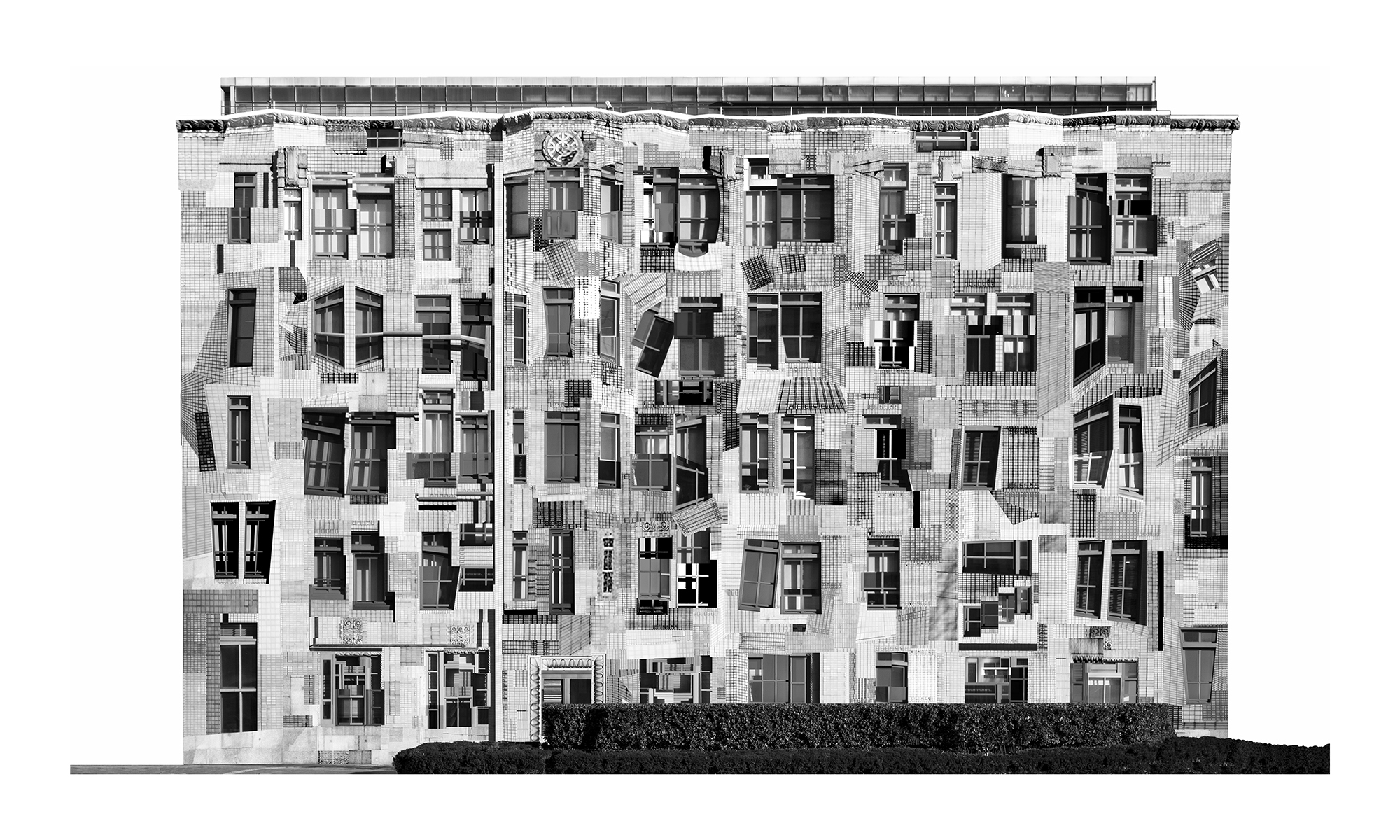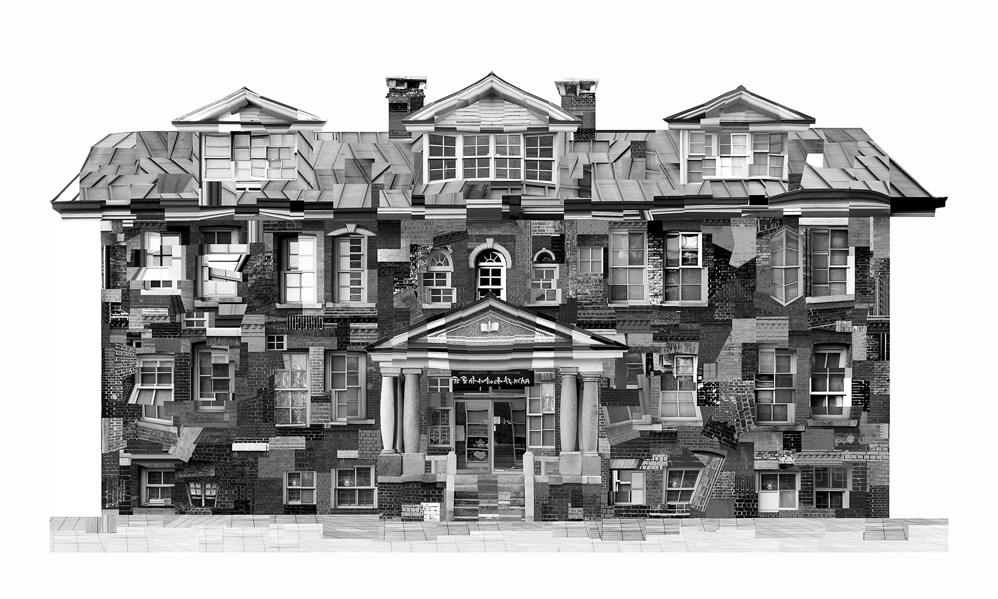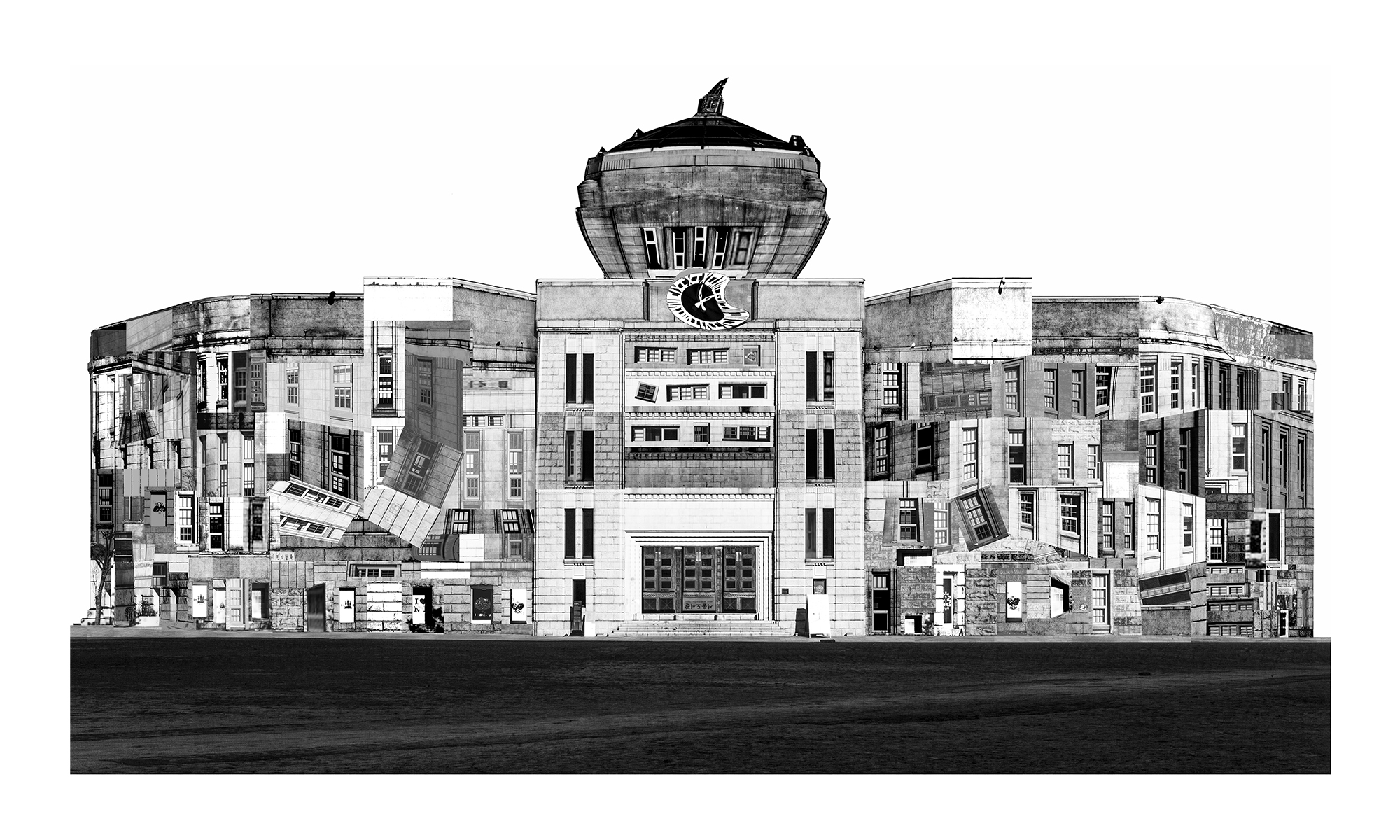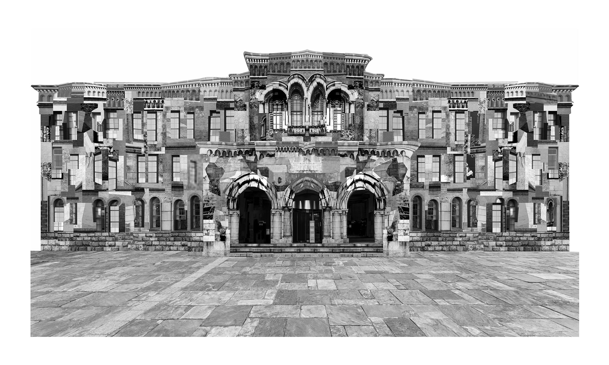 하나의 형태 안에 다양한 시대의 편린 들이 이어붙혀져 있는 이 작업에서 건축물은 접촉의 상징이