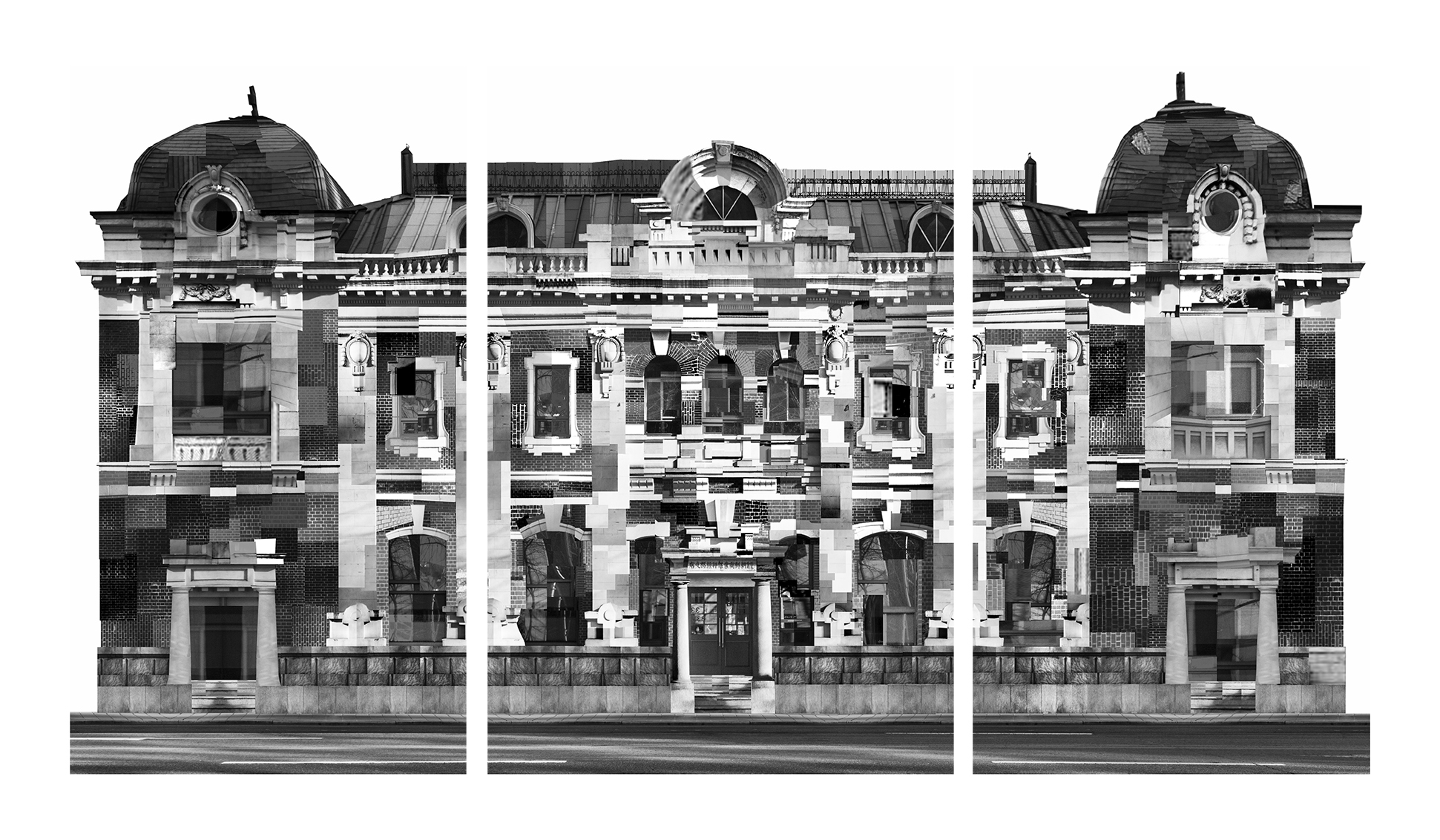 건물의 형태를 이루는 조각들은 같은 건물을 촬영 한 것 이지만 서로 다른 시대에 촬영된 것들이다.