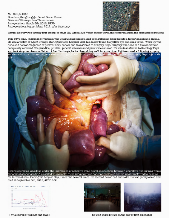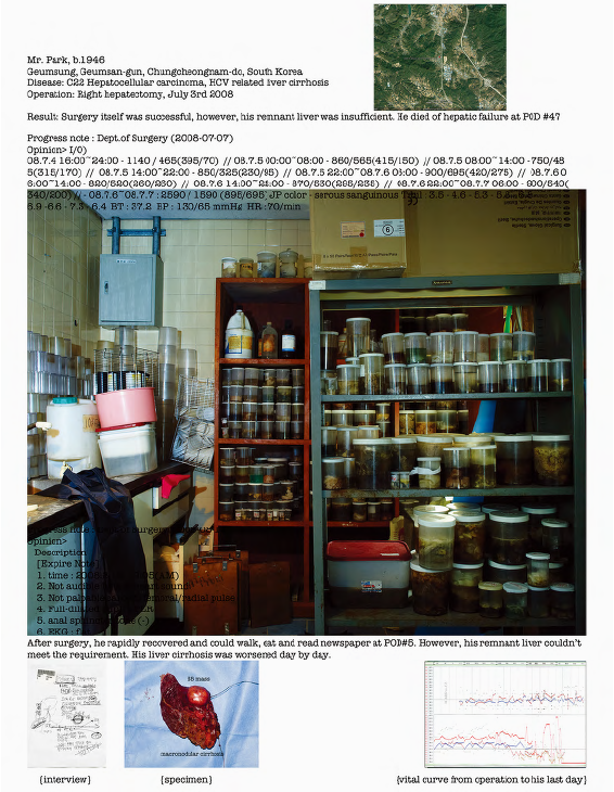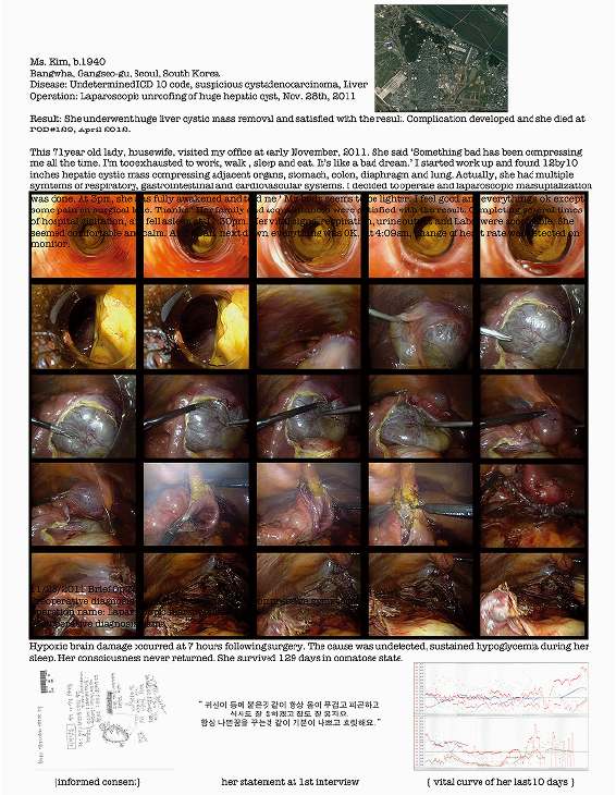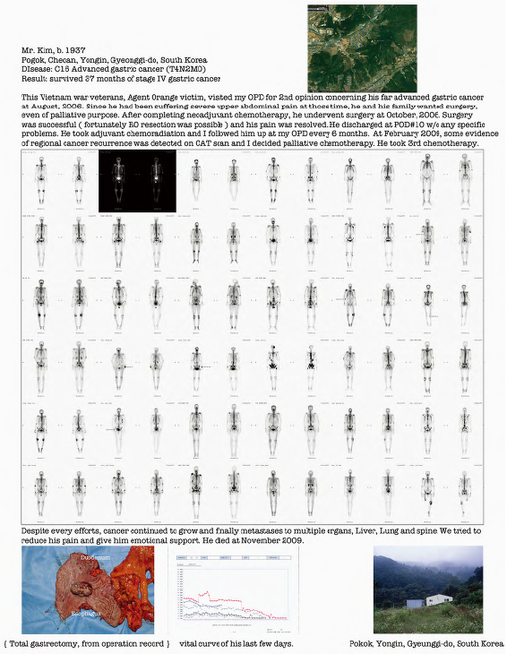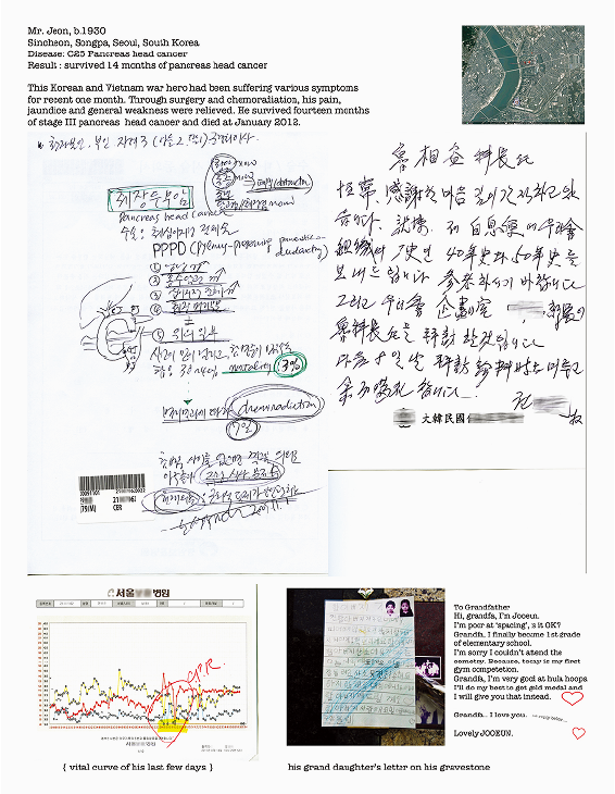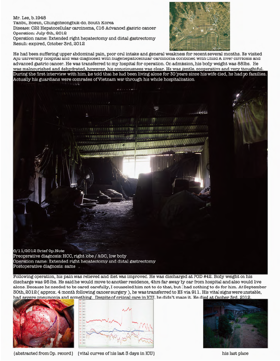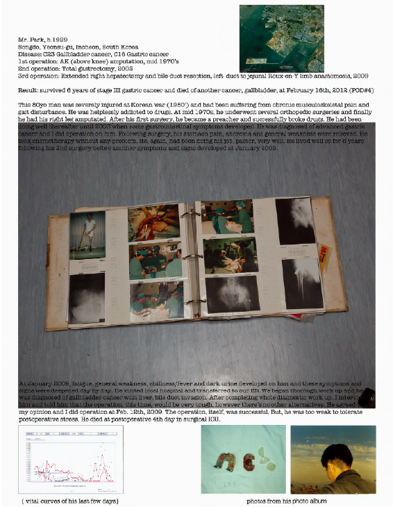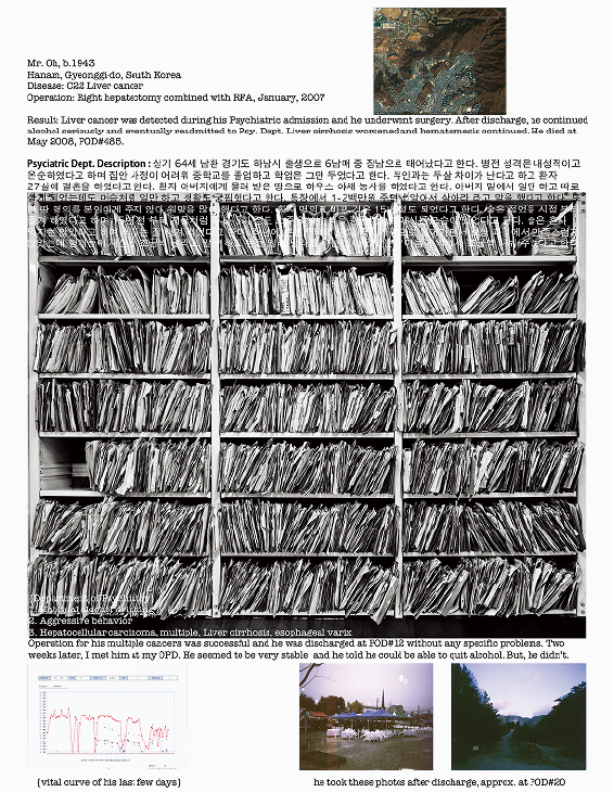 이 작업에 등장하는 환자들은 존재하며, 실제로 내가 만난 이들이다. 부디 그들의 신원과 영역을 존중해주시기를 바란다. 2005년 한 해 동안 국내에서만 7만 명이 ‘암’으로 사망하였다. 이런 비극적인 지표 이에서 연작
