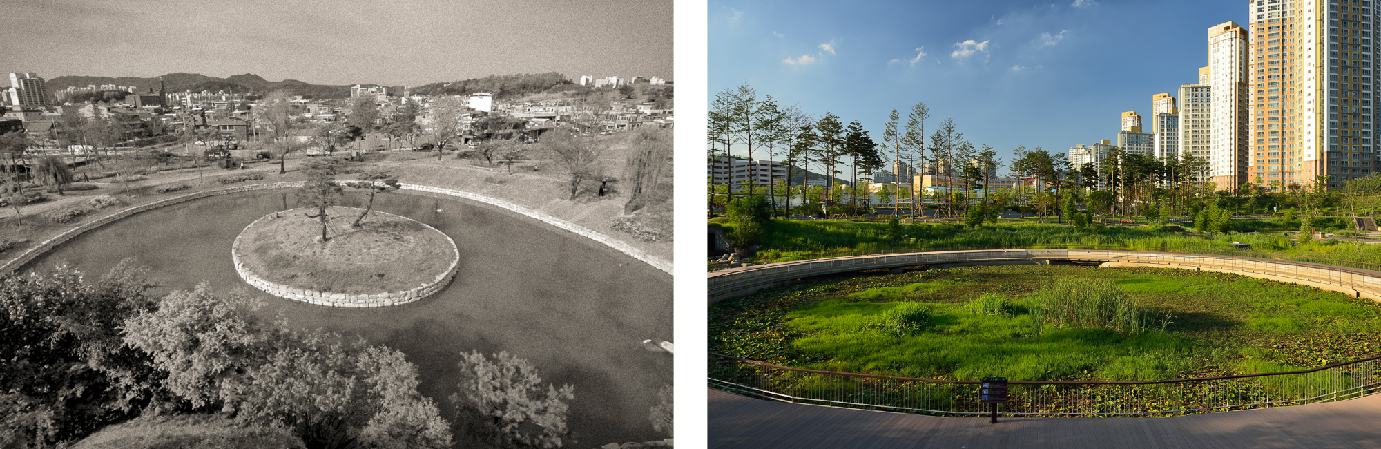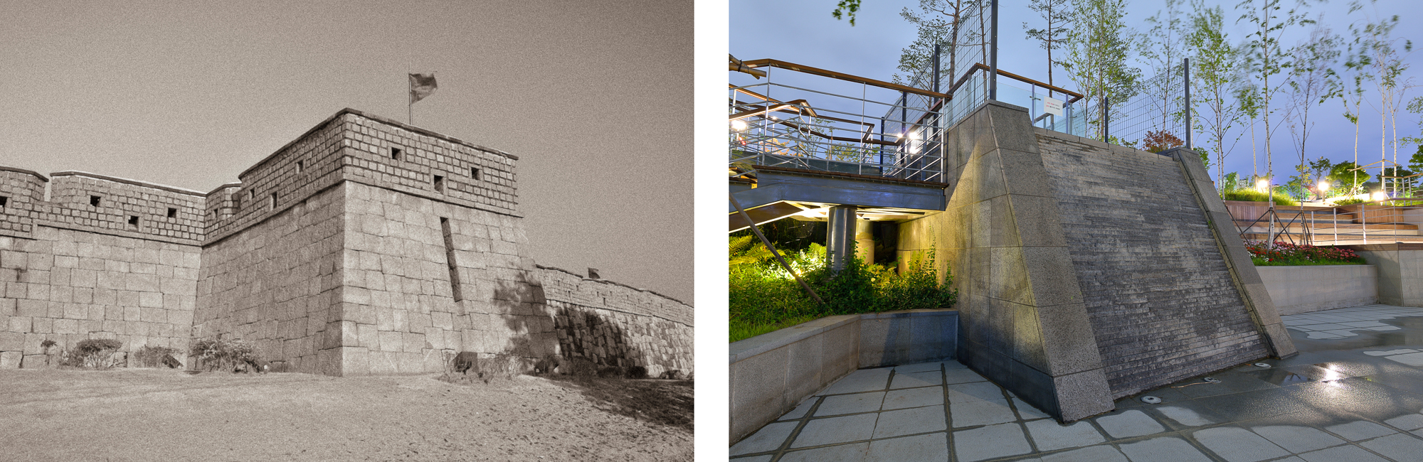 하나씩 매듭지어나간 형상의 유사성들은 따라서 설계자의 의도나 시점의 우연적 중첩을 넘어 나의 바램에 가장 큰 원천이 있었을 것이다. 누군가는 결코 엮이고 싶지 않을는지도 모르는, 그래서 설마하니 드러날 리 없다는 듯 은근히 전개되는 둘 사이에 담 쌓기 운동이 애써 복개하고자 하는 그 질기고 해묵은 관계에 대한 바램 말이다.이 닮은꼴들로부터 차이점과 공통점에 관한 상상과 담론들이 촉발되기를, 나아가 행정구역상으로는 하나이면서도 내재적으로는 결코 단일하지 못한 수원이라는─그리고 비슷한 처지에 놓여있는 다른 많은─도시를 가로지르는 구획과 배제의 담벼락에 작은 숨구멍이 틔워지기를 희망한다.